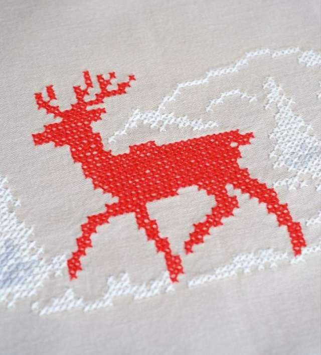 Bedruckte Decke mit Webrand in der Sticktechnik: Kreuzstich vorgezeichnet, der Marke Vervaco.