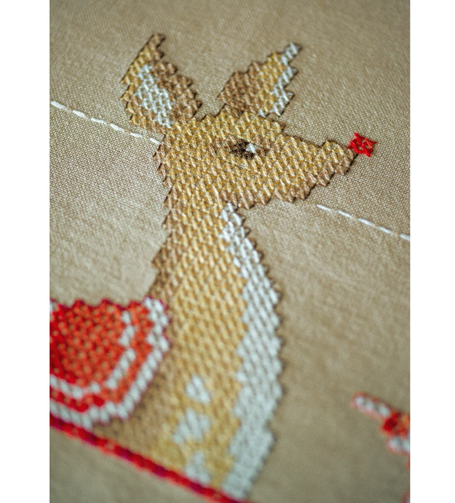 Vervaco Kreuzstich Stickpackung Tischläufer mit gedrucktem Stickbild und Webrand "Rentieriere und Weihnachten"